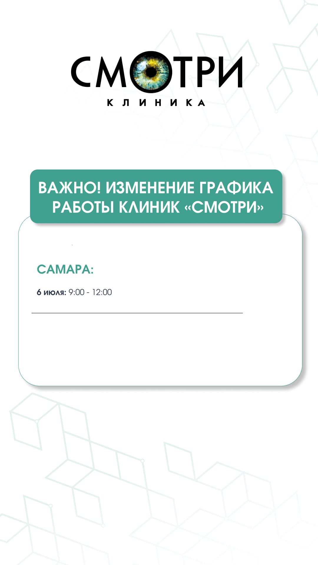 Изменение в графике работы клиники